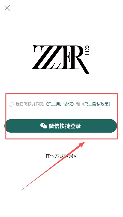 1、第一步是打开只二软件,进入登录页面后选择微信快捷登录方式,勾选同意用户协议与隐私政策,就能完成一键授权操作。
