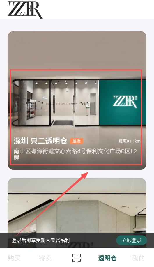 4、若想查询线下门店,可直接在透明仓页面查看具体地址。例如深圳透明仓,页面会清晰显示距离及详细位置,这样能避免跑错地方而耽误时间。