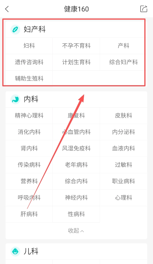 3、在科室选择页面,清晰地列出了妇产科、内科、儿科等所有科室,方便你做出选择。