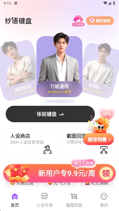 200+精品人设,覆盖所有聊天场景,还可定制人设,生成你的专属回复。