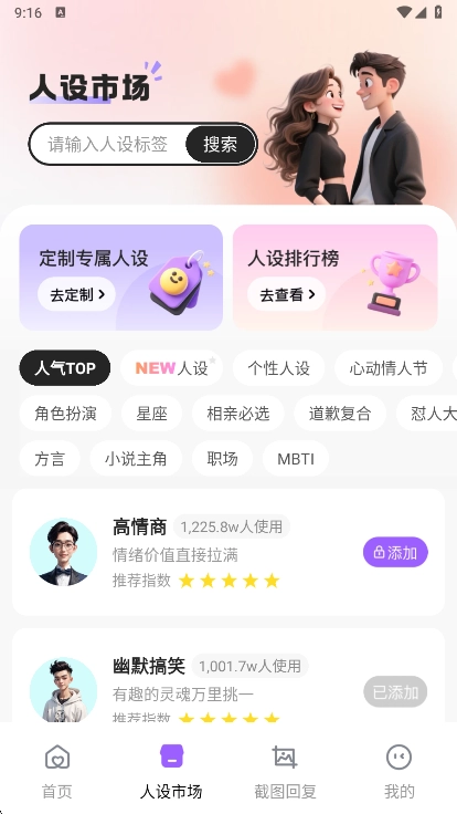 【精品人设】200+精品人设,覆盖所有聊天场景,还可定制人设,生成你的专属回复。