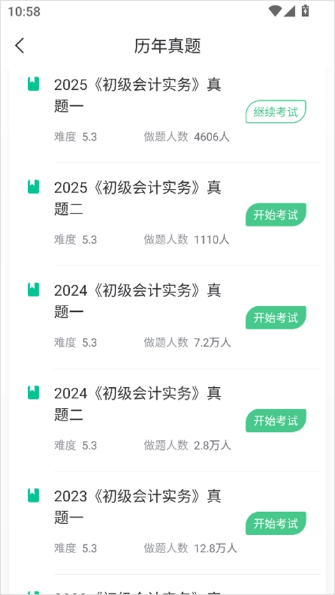 3、平台会提供丰富的真题,大家可根据自身需求挑选试卷,例如小编此次选择的是2025年的初级会计实务。