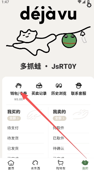 1、在我的页面,点击上方钱包/卡券。