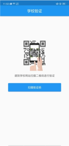 1、打开,首先需要进行学校验证,到学校网站扫描二维码进行验证;