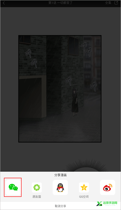 2、任意选择一种分享方式,分享后漫画会已一种长图片的形式出现在浏览器内,这个时候,我们只需下拉窗口,点击保存功能即可。
