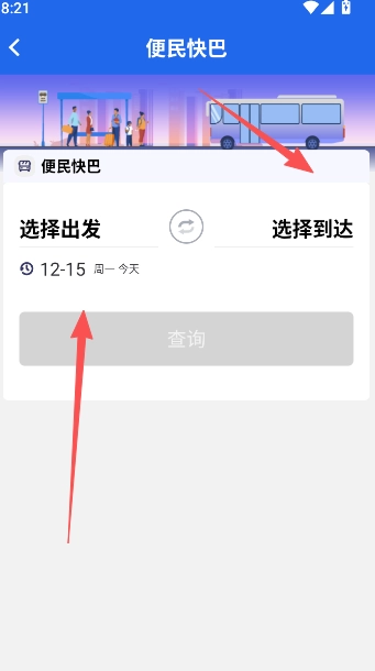 3、选择出发和到达地点。