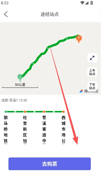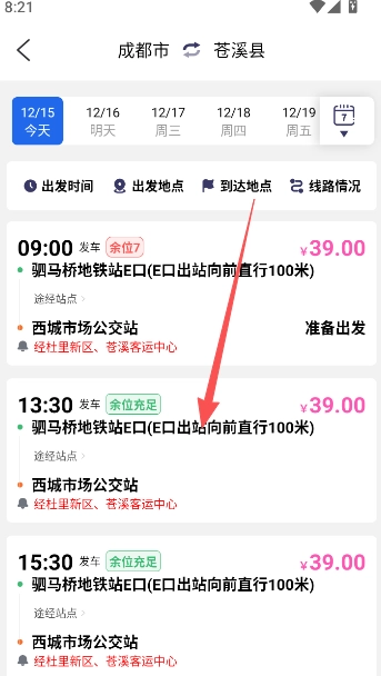 4、点击一个不是最近的时间点车辆发车页面,进入查看详情。
