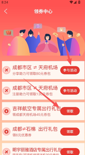 2、选择以参与活动或是直接领取的方式,获得优惠券。