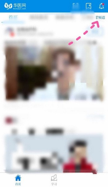 1、第一步,在掌上华医首页的右上方找到频道,然后点击进入。