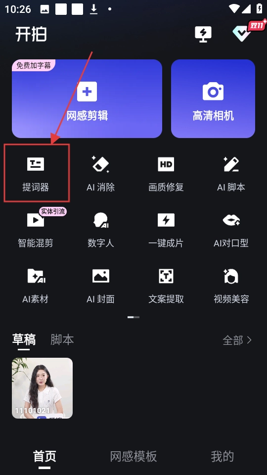1、在首页找到【提词器】功能按钮并点击,即可进入提词器页面。