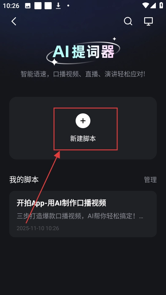 2、进入提词器页面后,点击【新建脚本】按钮,就能创建新的提词脚本啦。