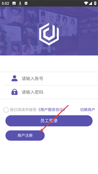 在美发美容类应用的登录页面,点击【商户注册】按钮,就能进入商户信息填写界面。
