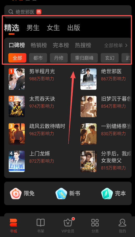 4、软件提供了限免、新书、完本等实用入口,方便你按需查找,开通VIP会员还能解锁百万高质量内容。
