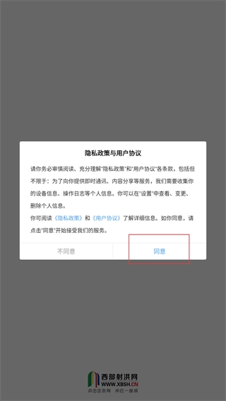 1、在【西部射洪网】的隐私政策与用户协议界面,阅读条款后点击【同意】,即可进入应用使用相关服务。