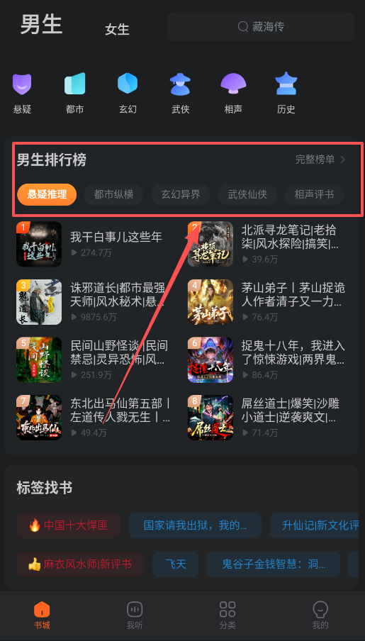 打开软件后,先查看底部的导航栏,建议重点使用“书城”和“分类”这两个功能入口,它们能帮助你快速知晓平台上有哪些可听的内容。