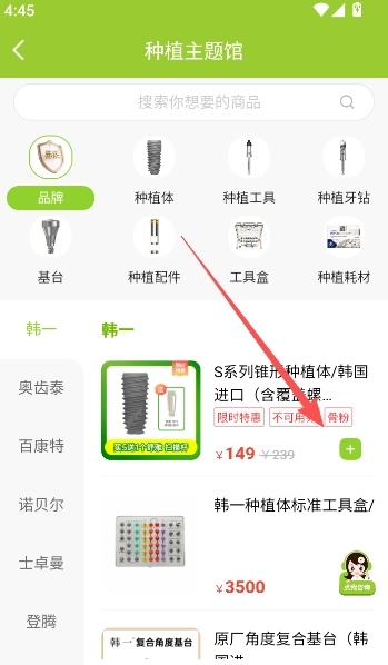 4、比如本站小编这里对种牙比较感兴趣,点击详情页面可以看到许多相关的商品,点击商品详情后面的+进行购买。