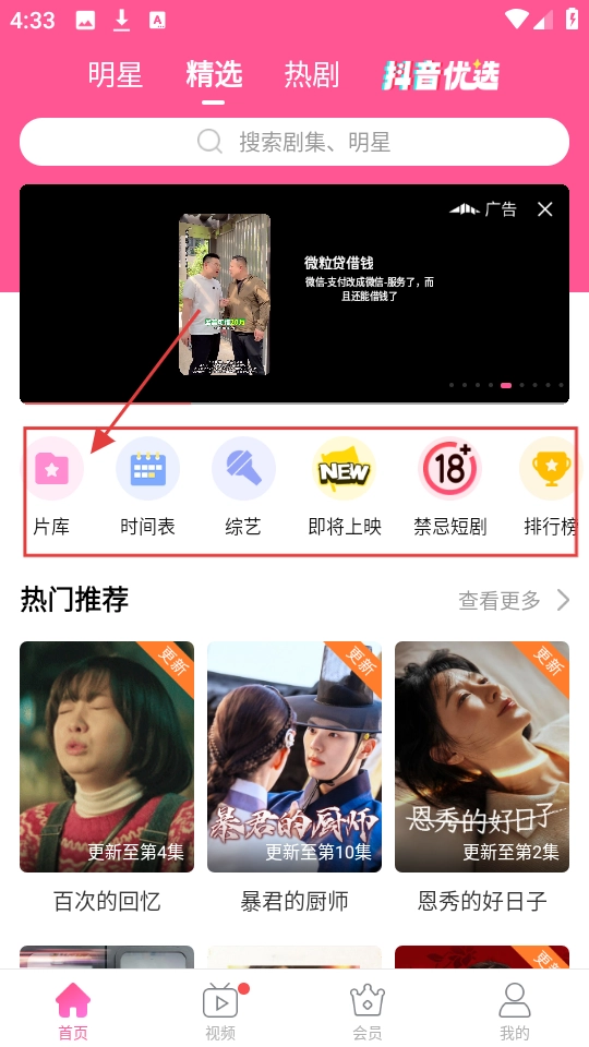 1、在应用首页,有【片库】【时间表】等功能入口,还有热门推荐剧集,方便找想看的内容呢。
