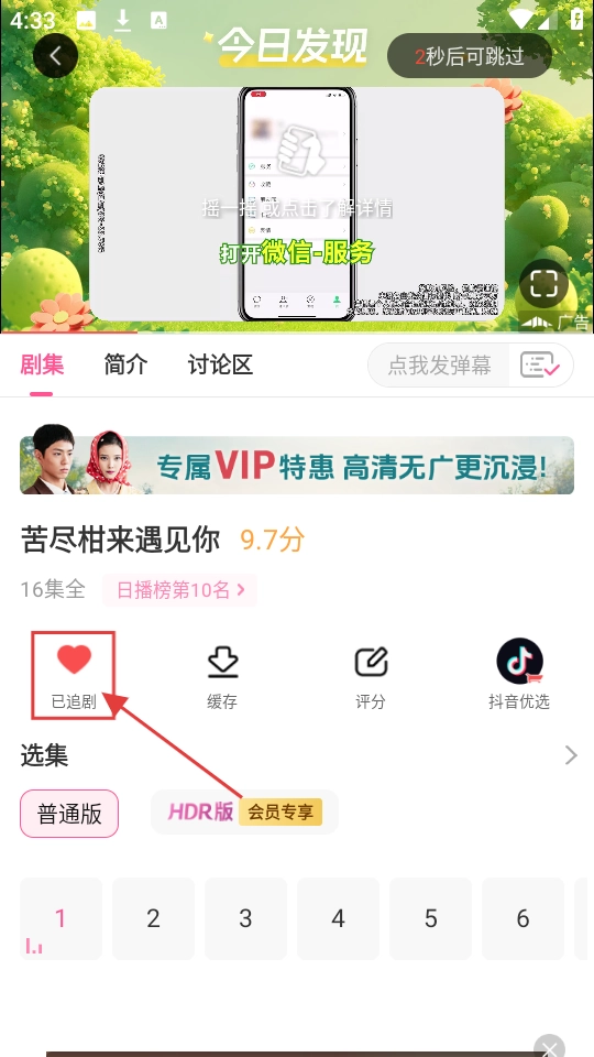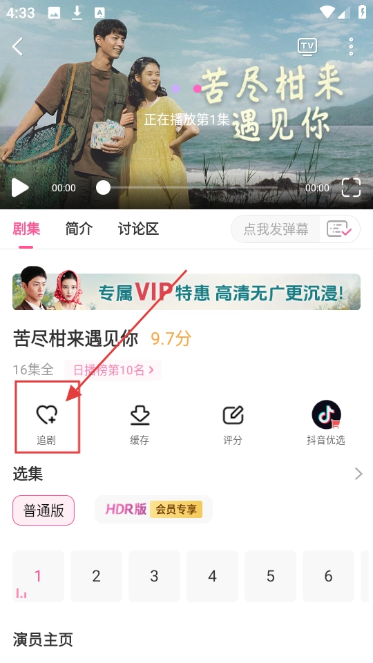 3、点开一部心仪的剧集,比如【苦尽柑来遇见你】,看到【追剧】按钮,点击就能把剧集加入追剧列表进行收藏啦。