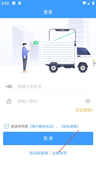 2、在登录页输入手机号与密码,勾选协议后点击【登录】,也可选择【验证码登录】或【注册账号】完成对应操作。
