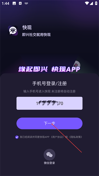 2、进入登录界面后,填写手机号并勾选协议,点击【下一步】按钮,也可选择【微信登录】快速进入。