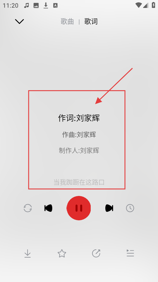 4、进入歌词显示界面后,就能查看歌曲的作词、作曲等信息,便于了解歌曲创作的相关内容。