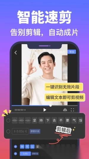 2.无需任何剪辑基础和知识就能轻轻松松上手软件,全程快速又简单,让你能够毫无负担的进行使用。