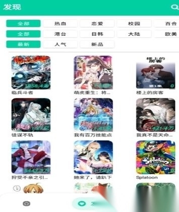 2. 接着会进入发现栏目,这里面包含了各种类型的漫画,您可以通过筛选功能,找到自己想要的内容。