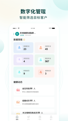 在行动营养师平台上,管理者可以自定义记录客户管理中的相关反馈,并及时调整跟进方向。智能生成周日工作计划和同步日历备忘提醒功能,帮助管理者更好地安排工作。行动营养师的AI分析功能能够实时监测健康风险,并提供健康动态数据分析。这些功能帮助管理者快速分析客户画像,精准锁定客户需求,并定向发布健康资讯。行动营养师还能精准推荐个性化解决方案,提升管理者的综合专业度和客户满意度,实现客户价值最大化。