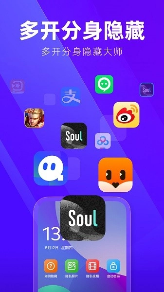 多开分身隐藏大师最新版能够协助用户守护隐私,避免他人进入手机里的私人应用,以及查看私密的照片与视频。