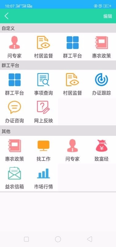 进入首页,点击问专家、村居监督等模块进行操作