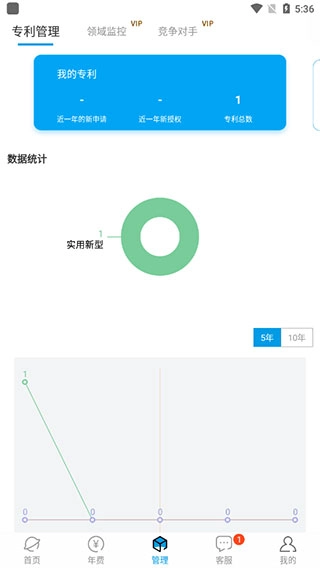 在管理页面中,你可以了解到专利的数据;