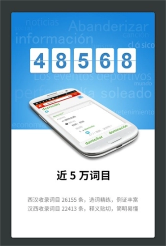 西汉、汉西双向查词服务,结合智能联想技术,可一站式查询西班牙语词目、短语及例句。