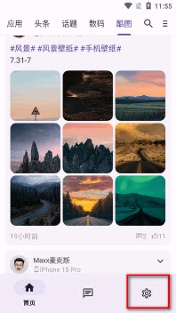 打开酷安极速版,点右下角的齿轮图标;