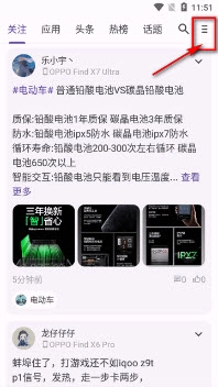 安装酷安极速版,点击右上角的三横图标;