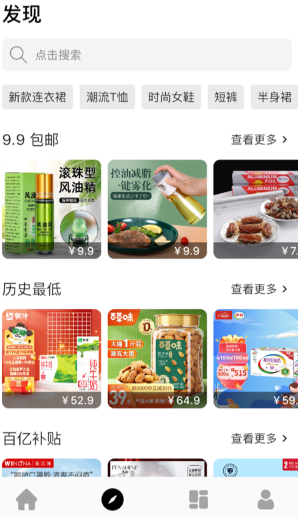2、软件内提供种类繁多的商品与优惠券,您不仅能在此选购丰富多样的商品,通过其他软件的商品标签搜索功能,同样可以找到对应的商品。