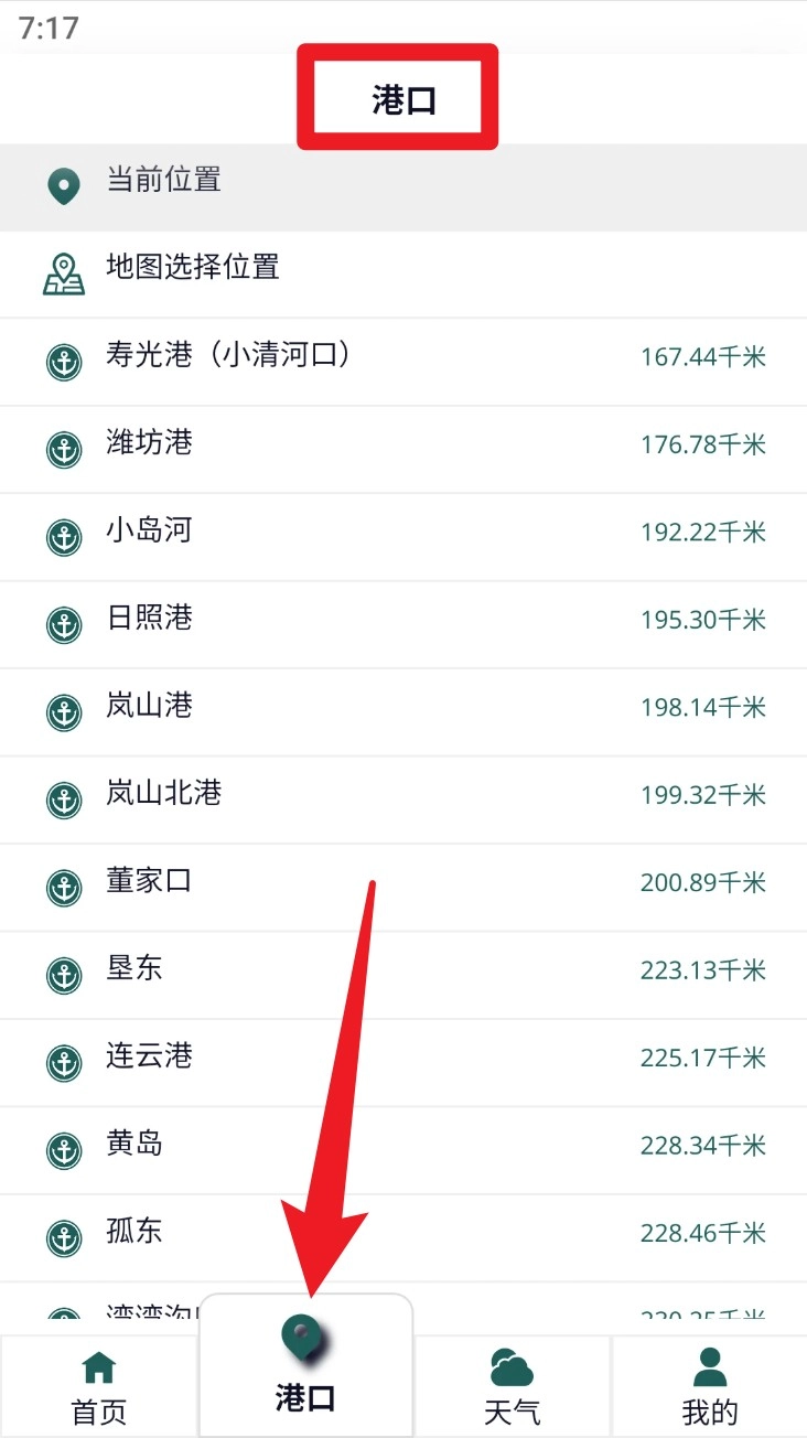 点击下方的“港口”页签,就能切换港口位置,也可以通过地图进行选择,进而查看相应港口的潮汐信息。