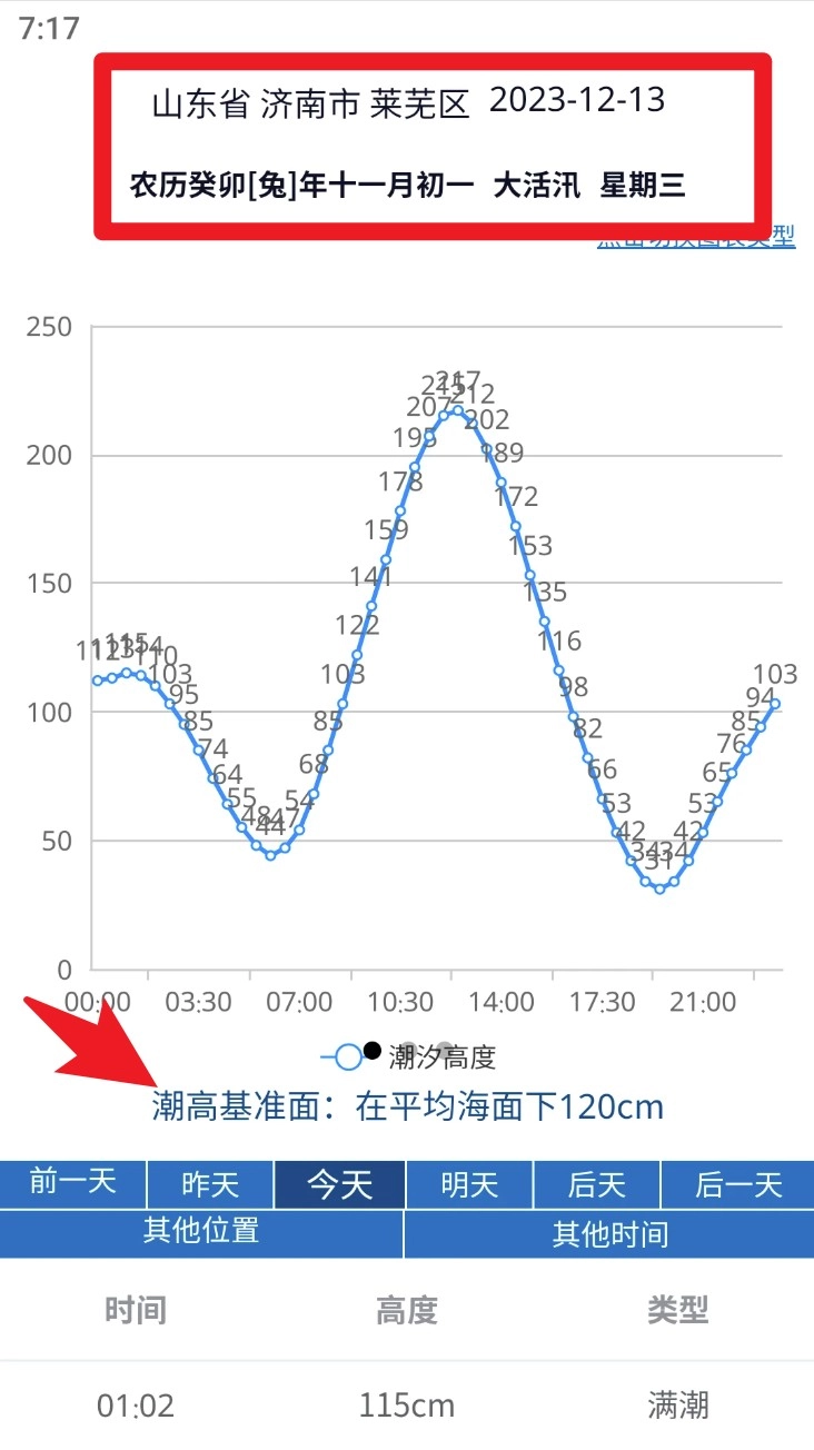 进入某天的潮汐详情页面后,你可以通过左右滑动来切换日期,从而查看该日期前后几天潮水的变化趋势以及精确的数值信息。