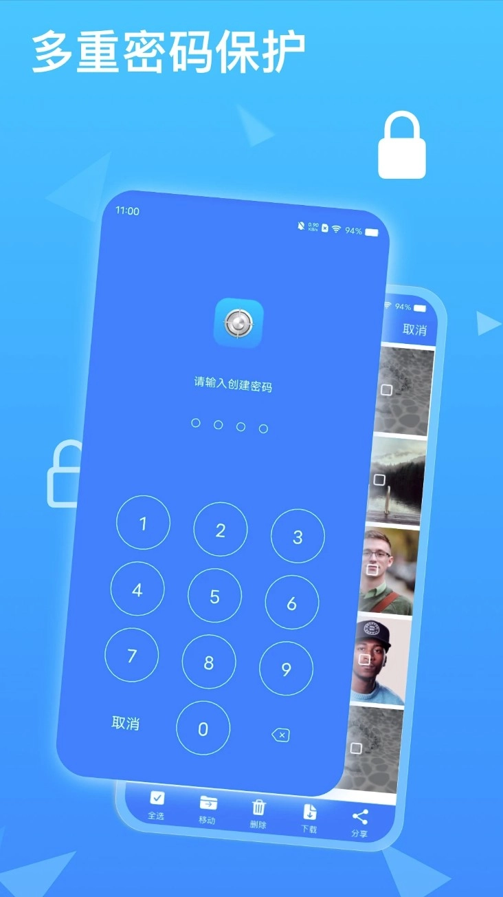 加密相册的解锁方式支持设置为指纹加图案的双重验证模式,保密性能十分出色。