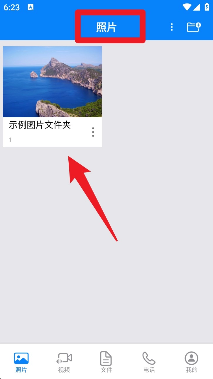 进入首页后,点击“照片”分类,接着选择已有的文件夹进入,即可查看加密相册里的内容。