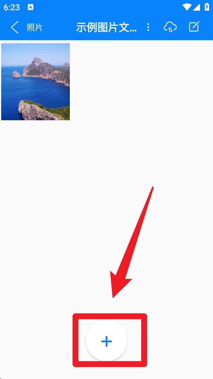 在相册页面点击下方的加号按钮,即可准备将新的照片文件导入到这个加密相册里。