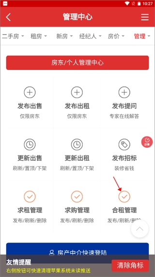 房产中介能够在此处对房源展开整理工作,还可以发布新的房源信息。