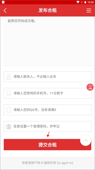 你只需输入合租的具体要求、房屋的详细信息,再附上个人联系方式,最后点击提交合租,就能完成发布啦。