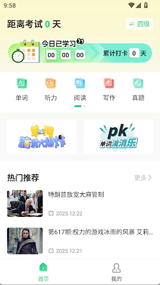 5、单词PK小游戏:通过趣味对战形式检验词汇掌握情况,在轻松氛围中巩固记忆,增加学习动力。