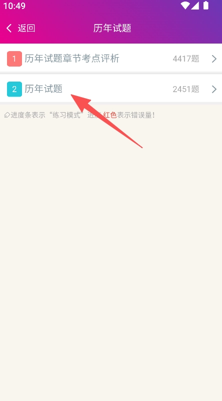 1、打开软件进入历年试题板块,查看历年试题章节考点评析及历年试题分类。
