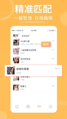 【精准匹配】约会、视频、语音一键触达,轻松满足需求。告别漫无目的的尬聊,让交流更高效直接。若对TA心生好感,弹窗即可开启私聊模式。