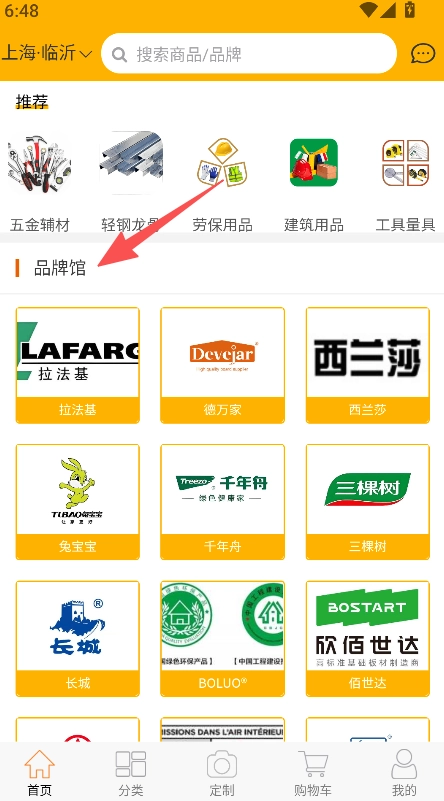 2、品牌馆汇聚展示各类建材品牌,方便快速找到目标品牌的对应商品。