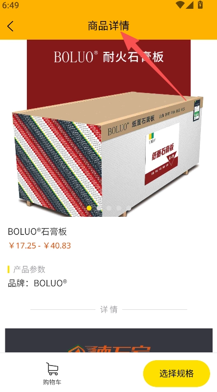 3、具备商品详情查看功能,支持查看产品参数、价格,还能选择相应规格。