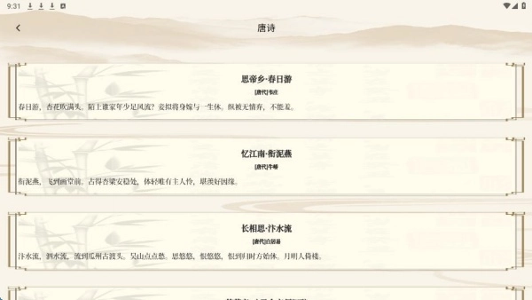 1、每首诗词均附有详尽的注释与白话译文,助力用户更深入地领会诗词内涵,轻松扫除学习过程中的障碍。