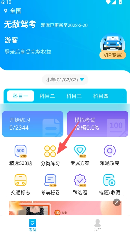 1、在科目一页面点击分类练习,进入分类练习页面。