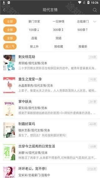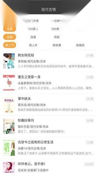 3、挑选你心仪的板块类型,接着能依据小说章节、人气高低等维度来进行分类筛选。